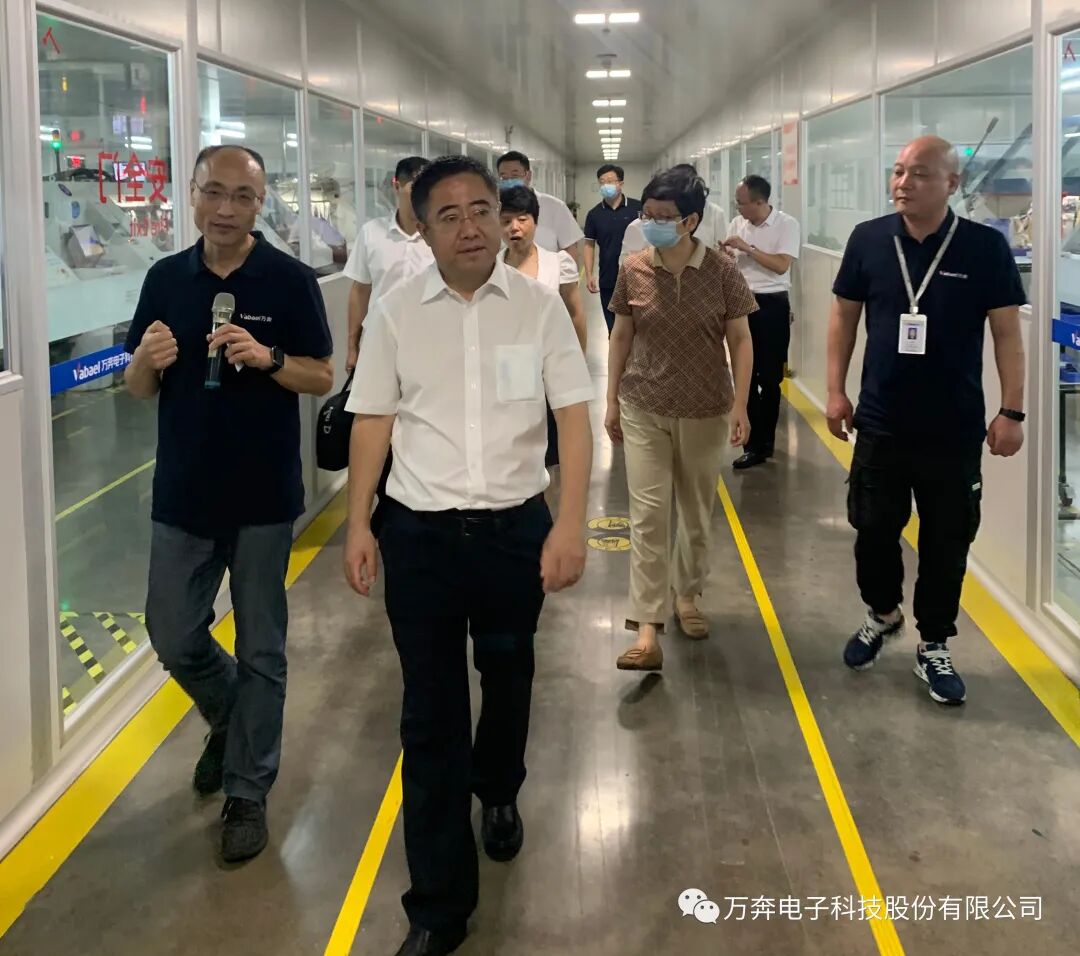 王书记一行参观了我司各生产车间,万奔电子公司总经理吕欣、常务副总经理金赛勇及副